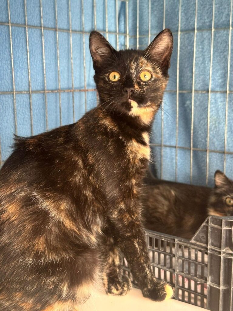 Die bildhübschen Schildpattkätzinnen Vita Zausel und Chipsy haben bereits in ihrem jungen Leben mehr erlebt, als sie sollten. Gemeinsam mit ihrer Mama Mona wurden sie in einer Katzenkolonie entdeckt. Als die beiden Babys damals zunächst ohne ihre Mutter mitgenommen wurden, suchte Mona ihre Kitten verzweifelt. Zum Glück wurden Vita Zausel und Chipsy wieder zurückgebracht, sodass wir schließlich alle drei gemeinsam sichern und auf eine Pflegestelle bringen konnten.