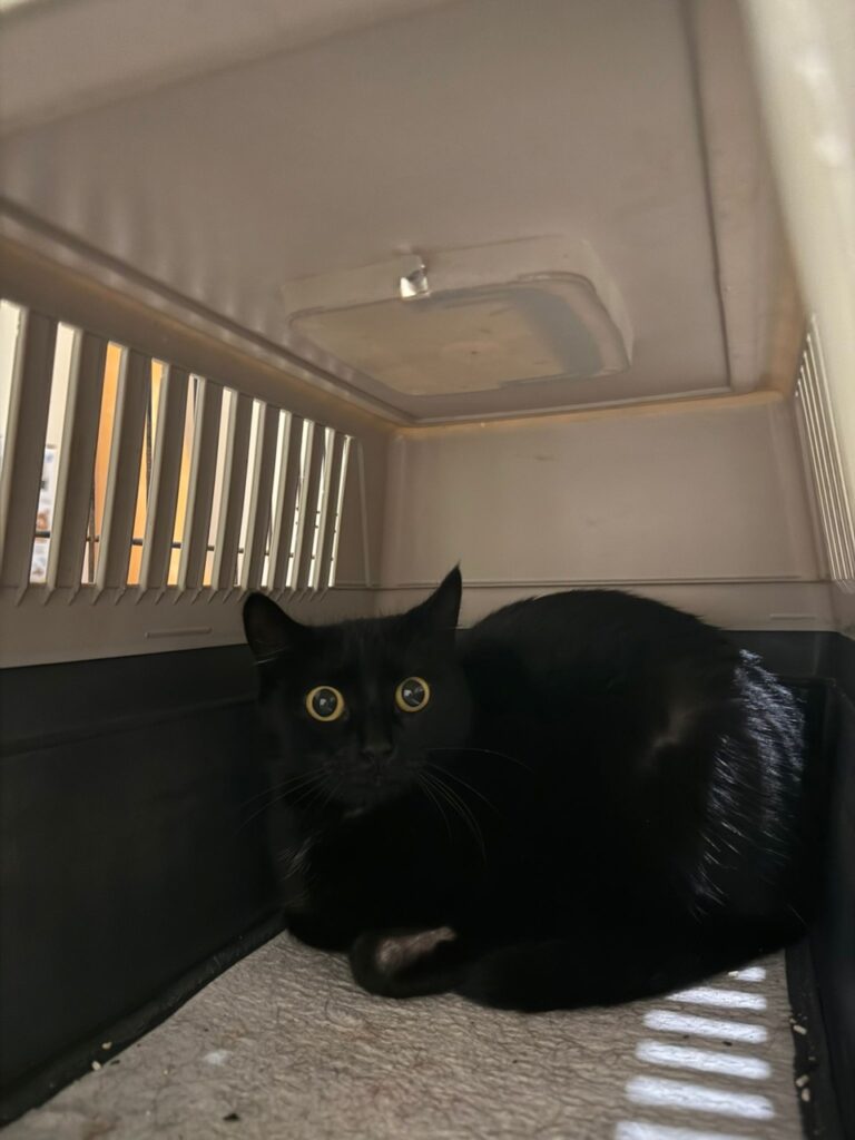 Mama Mona ist eine wunderschöne schwarze Katze. Vita Zausel (langhaarig), Chipsy und Mona sind alle drei derzeit noch sehr schüchtern und zeigen verständlicherweise viel Unsicherheit und Angst – nach allem, was sie erlebt haben, ist das kein Wunder.
