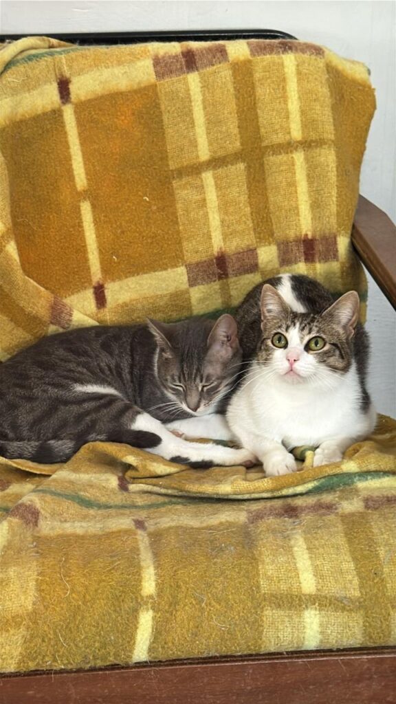 Life (grautiger-weiß) und Mera (tiger-weiß) sind bei ihrer Pflegemama schon zutraulich und wünschen sich ein gemeinsames Zuhause. Vor Fremden haben sie aber noch Angst. Sie werden im neuen Zuhause also erst einmal eine Weile brauchen, bis sie auftauen.