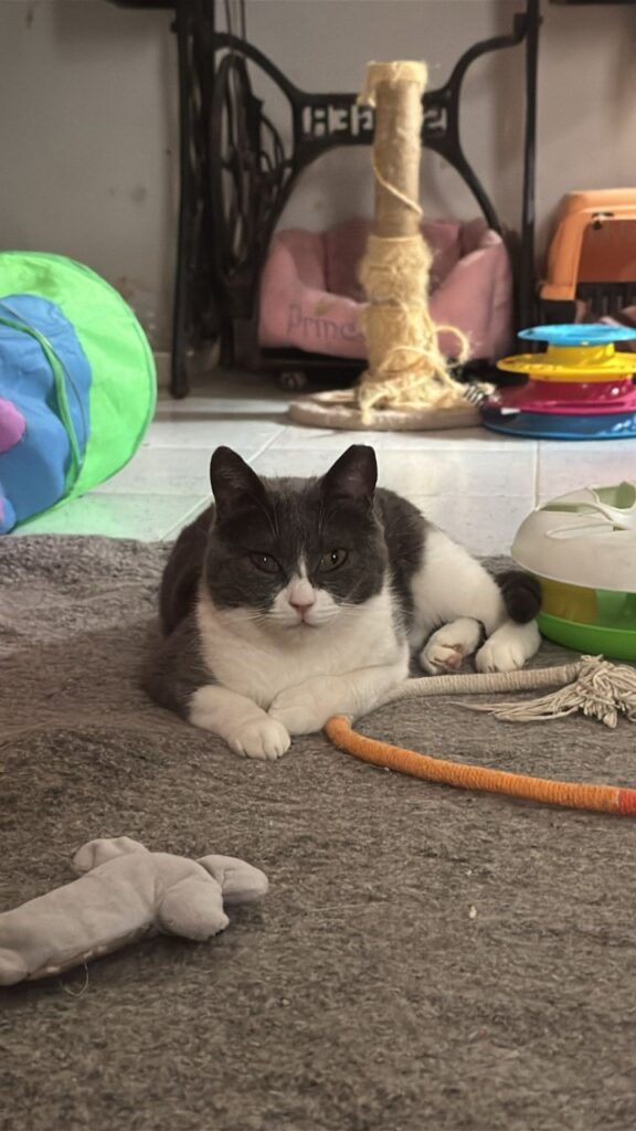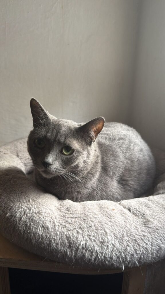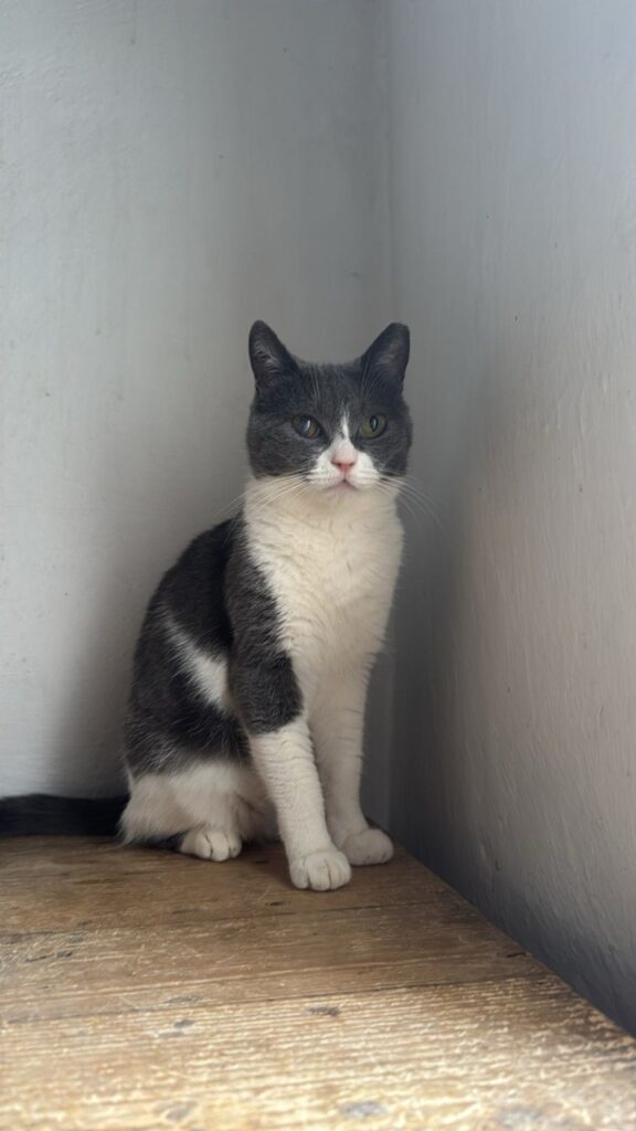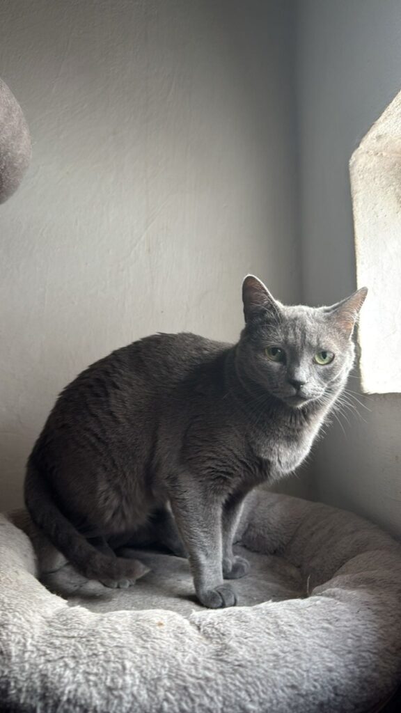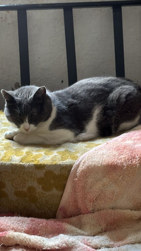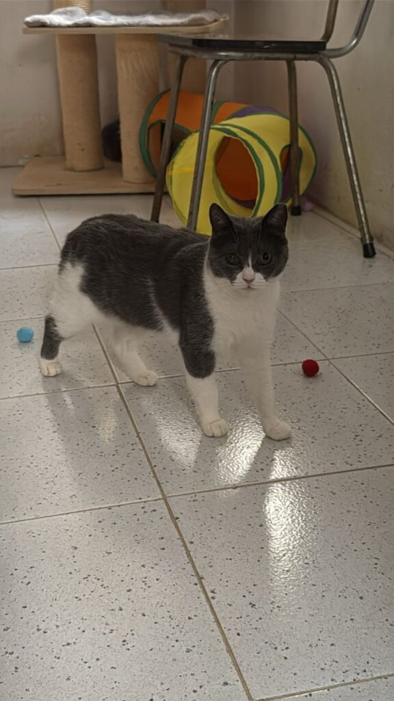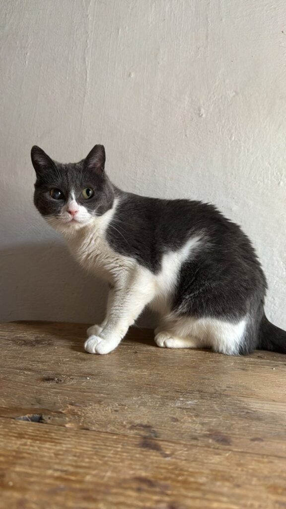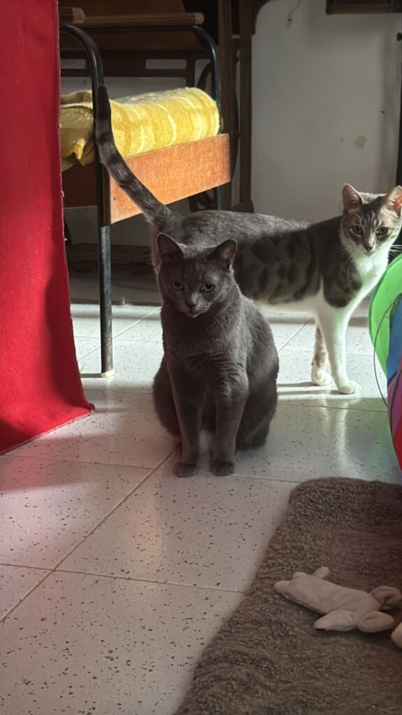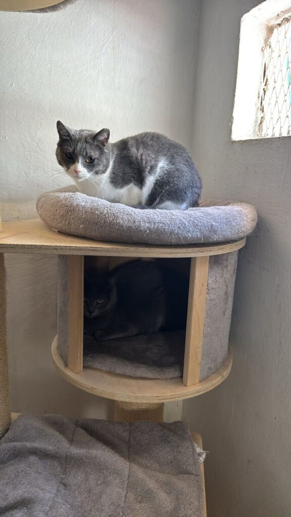 Die Schwestern Skully (grau‑weiß) und Julie‑An (grau) wurden in Felsen entdeckt – in einem sehr schlechten gesundheitlichen Zustand. Auf unserer Pflegestelle wurden sie liebevoll aufgepäppelt und haben sich körperlich gut erholt.