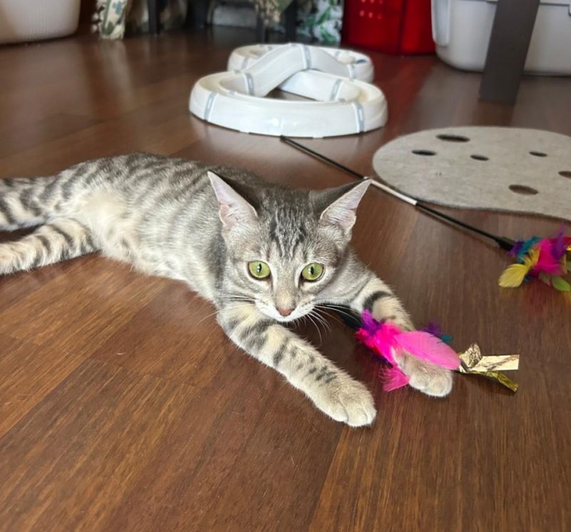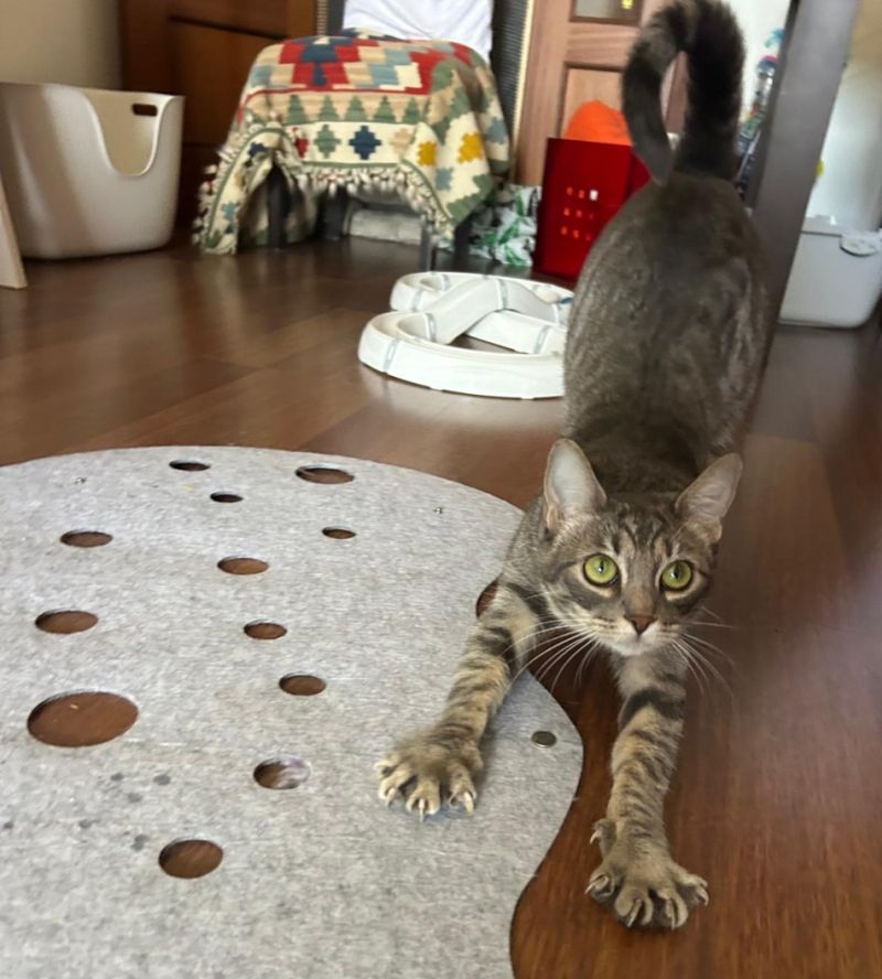Die hübsche grau-getigerte Katzendame Molly hat in einem derzeit geschlossenen Hotel 5 Kitten zur Welt gebracht. Zum Glück wurde die Mama mit ihren Babys von Hotelangestellten entdeckt und aufgenommen.