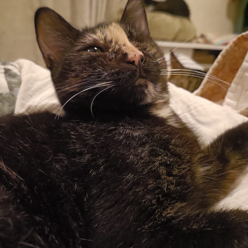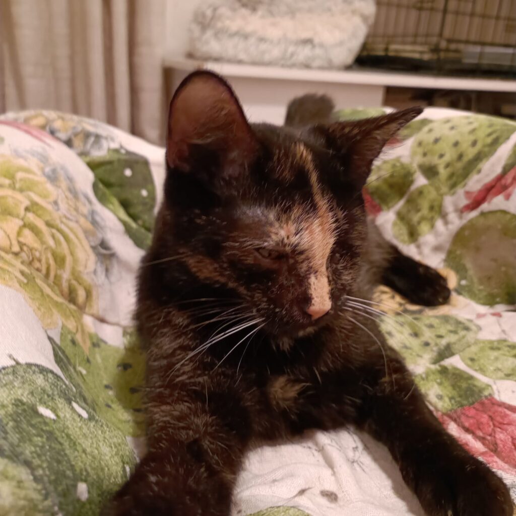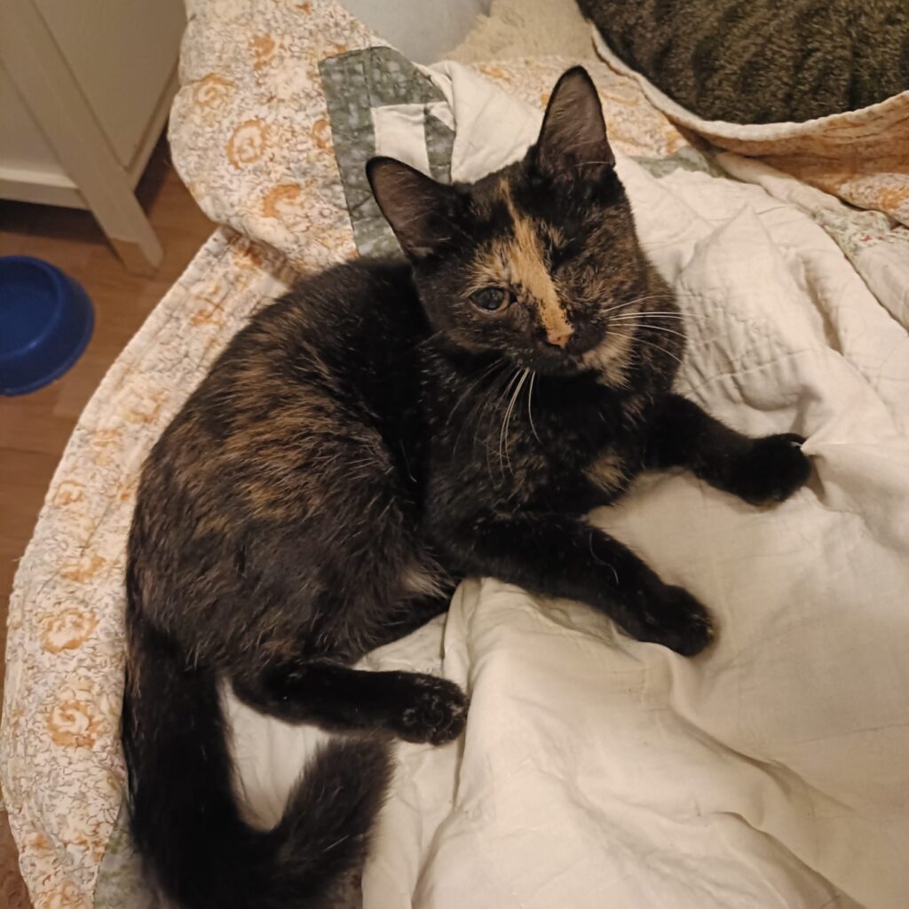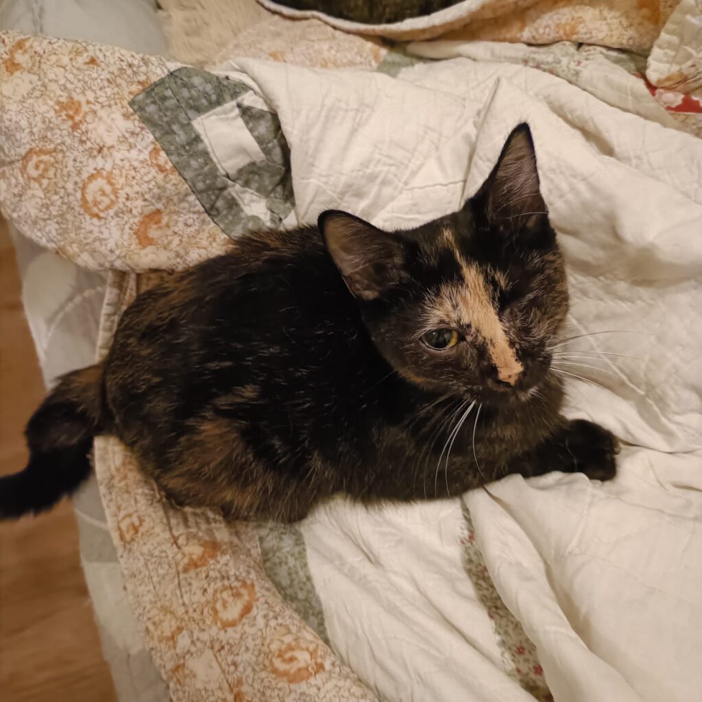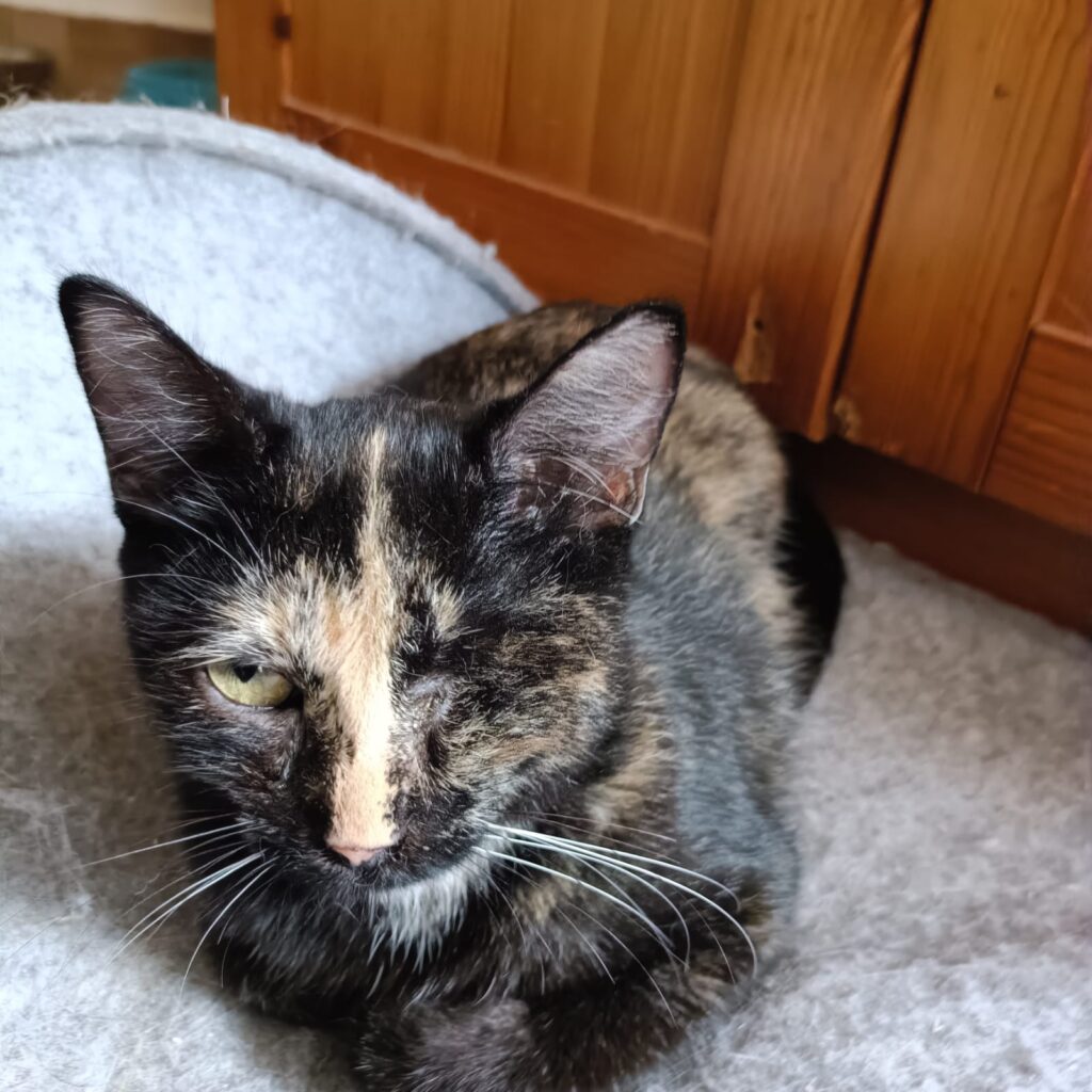 Frida musste leider ein Auge entfernt werden – das beeinträchtigt sie jedoch kaum. Sie kommt damit wunderbar zurecht und lässt sich ihre Lebenslust nicht nehmen.