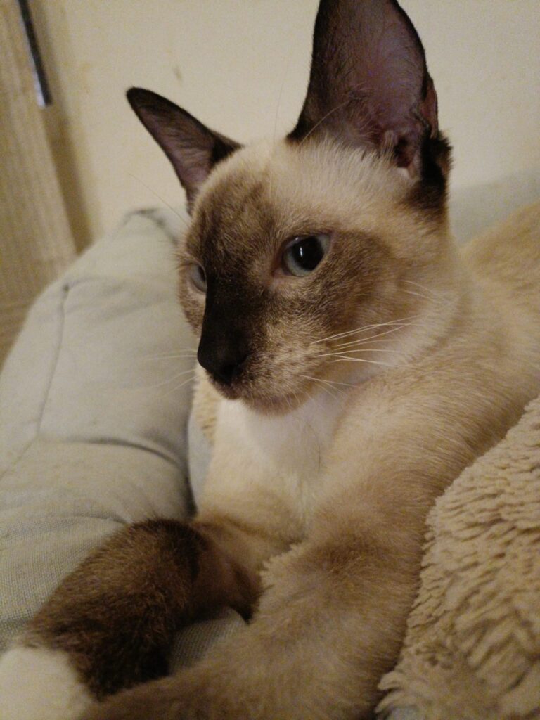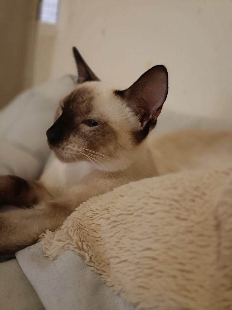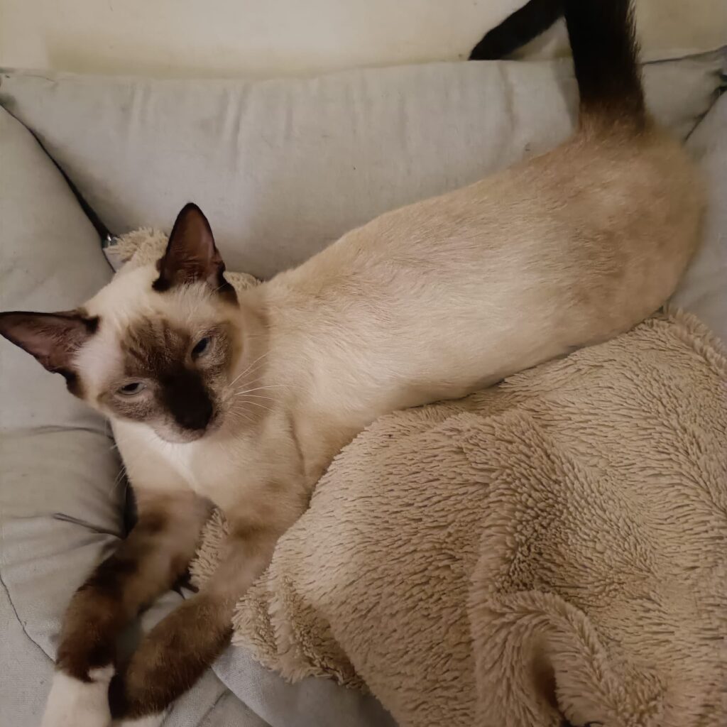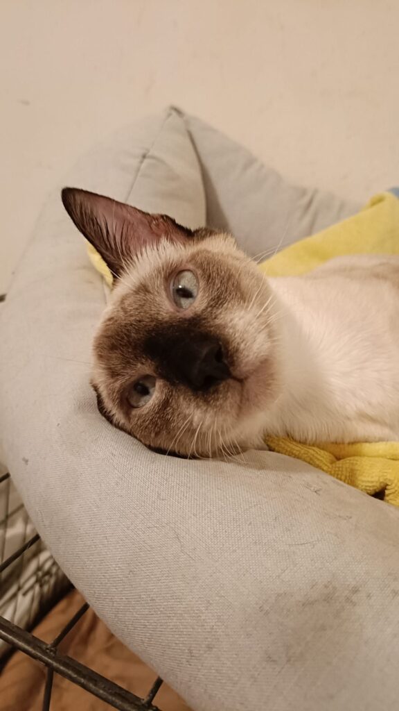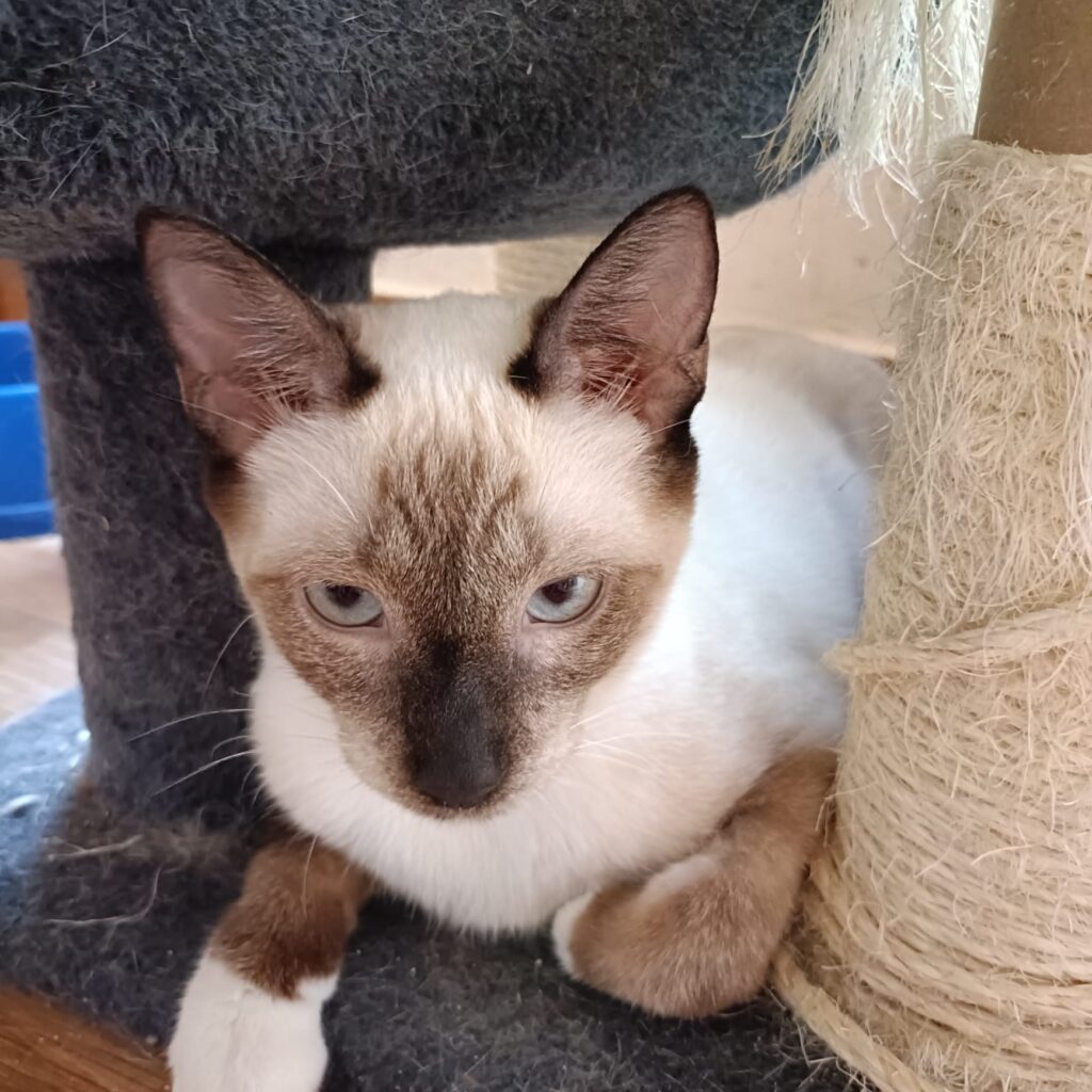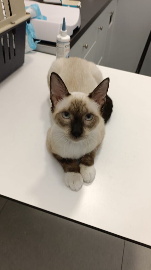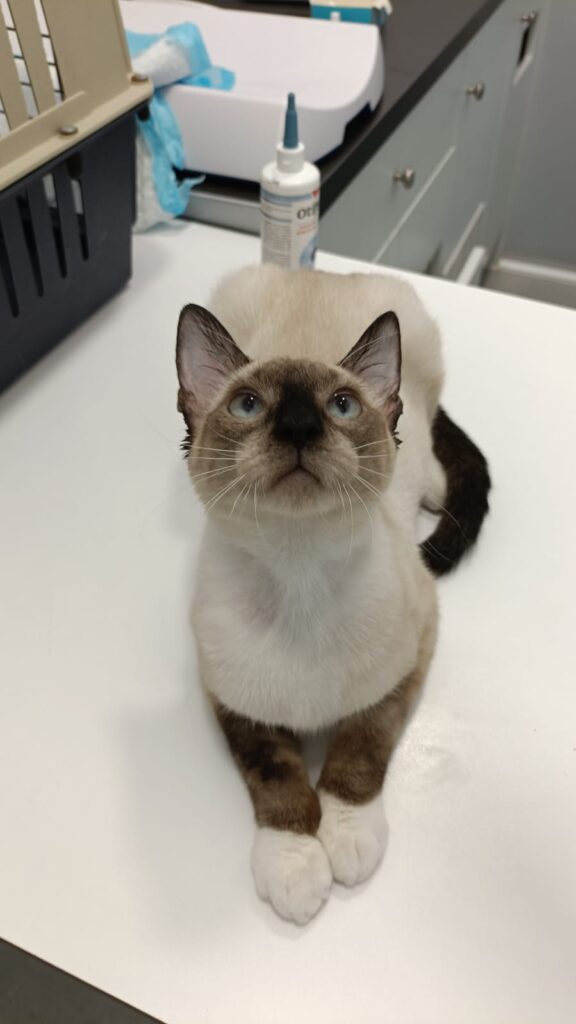 Ennis ist ein junger Siam-Mix-Kater, der im Hafen gefunden wurde. Als er zu uns kam, hatte er eine starke Augenentzündung und eine sehr schwere Ohrenentzündung – beides ist inzwischen gut behandelt und er ist ein normaler aufgeweckter Jungkater.